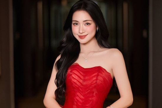 Á hậu Miss Universe Vietnam Quỳnh Anh nổi bật với chiếc đầm dài thêu họa tiết xứ Huế đính kết thủ công tỉ mỉ.